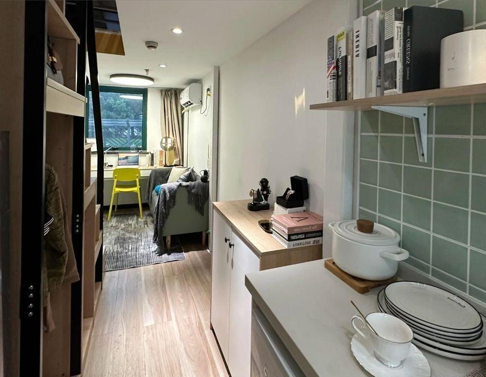 一进屋就能看到厨房,由于空间有限,厨房只能设计成开放式的。不过其布局十分清晰,看起来并不杂乱: